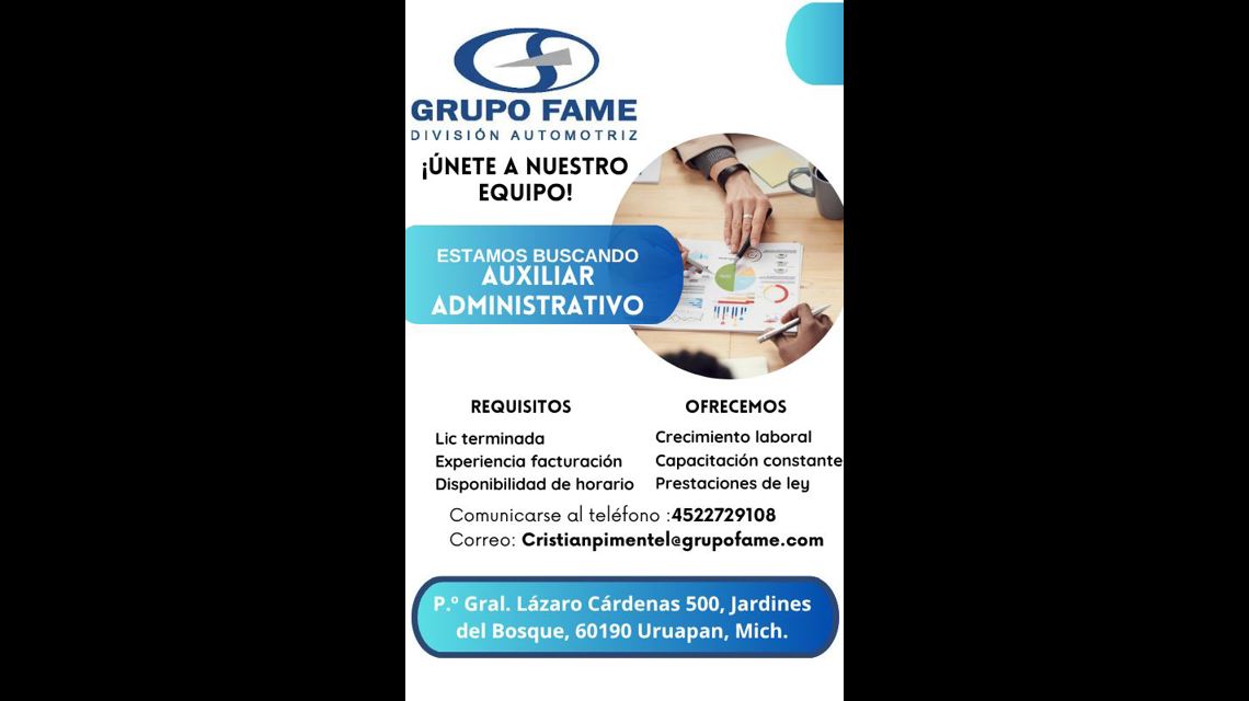 Empresa líder en el sector automotriz, presente en los estados de Michoacan, Querétaro y Estado de México,  con mas de 50 años en el mercado Y mas de 1000 colaboradores.