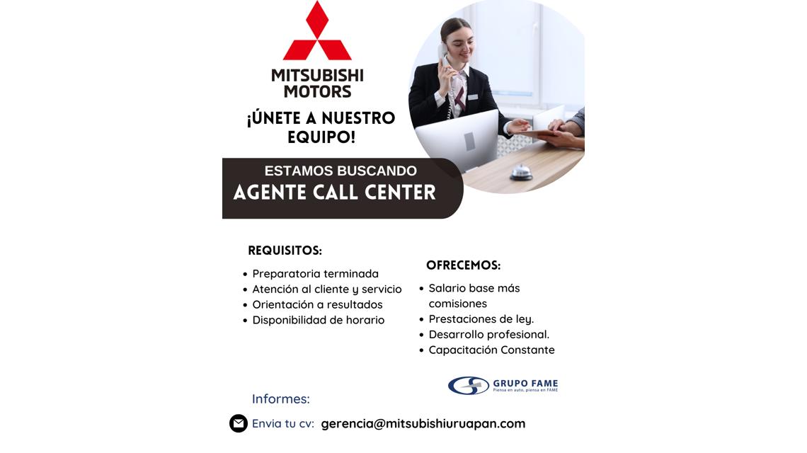 Oportunidad: Grupo Fame busca un Agente de citas Mitsubishi en Uruapan para unirse a nuestro equipo. Este rol es fundamental para gestionar y coordinar las citas de nuestros clientes, asegurando una experiencia óptima y satisfactoria.